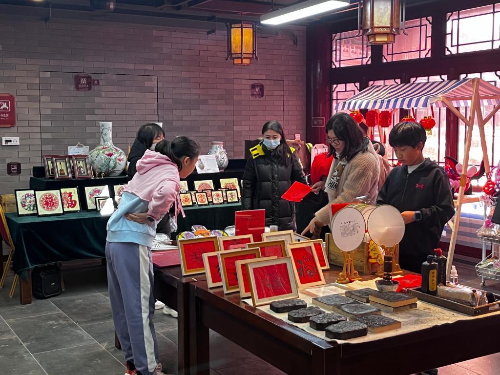 走進天津市西青區楊柳青民俗文化館,古色古香的展示大廳里,楊柳青年畫、剪紙等非遺商品琳瑯滿目,游客漫步其中精心挑選;楊柳青年畫體驗區內,講解員的講解聲和孩子的笑鬧聲交織一片……實習講解員王紫格看著依舊往來不斷的游客,有種“做夢”的感覺。