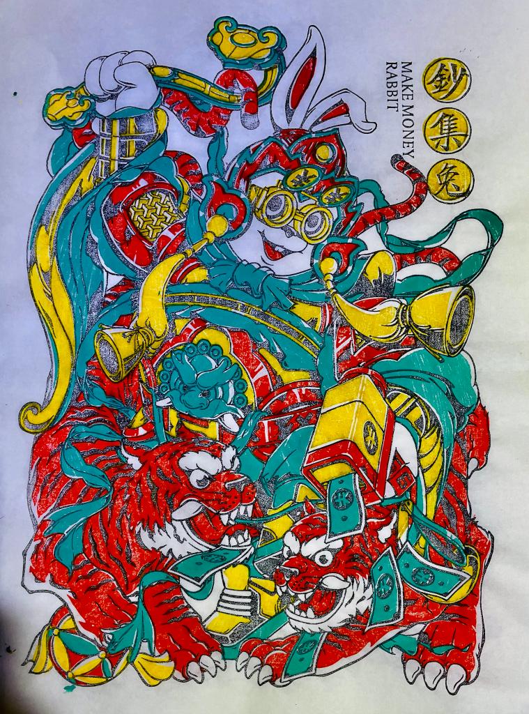 這是上色后的“鈔集兔”年畫。(受訪者供圖)