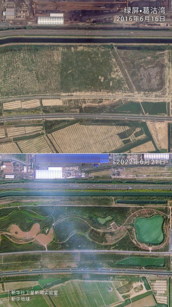 衛星拍攝的綠屏·葛沽灣對比圖。
