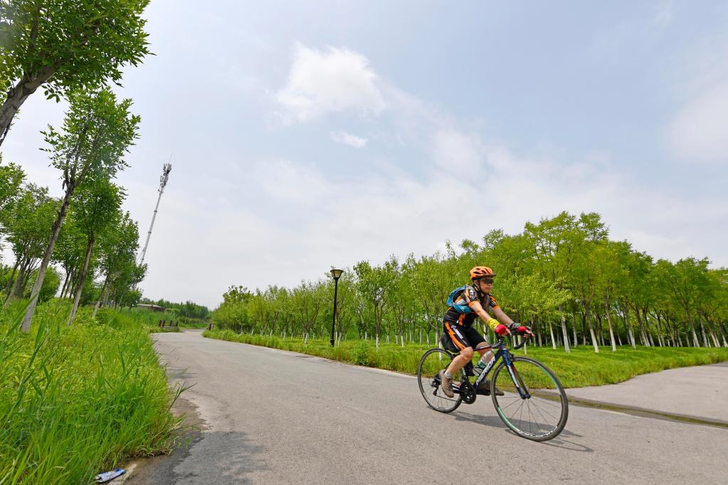 游客在天津綠色生態屏障內騎行。新華社記者 趙子碩 攝