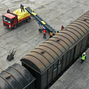 2月17日,工作人員在蘭州貨運中心金昌鐵路貨場內進行化肥卸車作業。