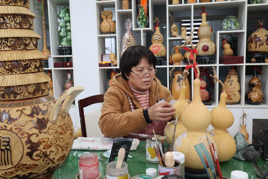 村民在制作工藝葫蘆。新華社記者張力元 攝