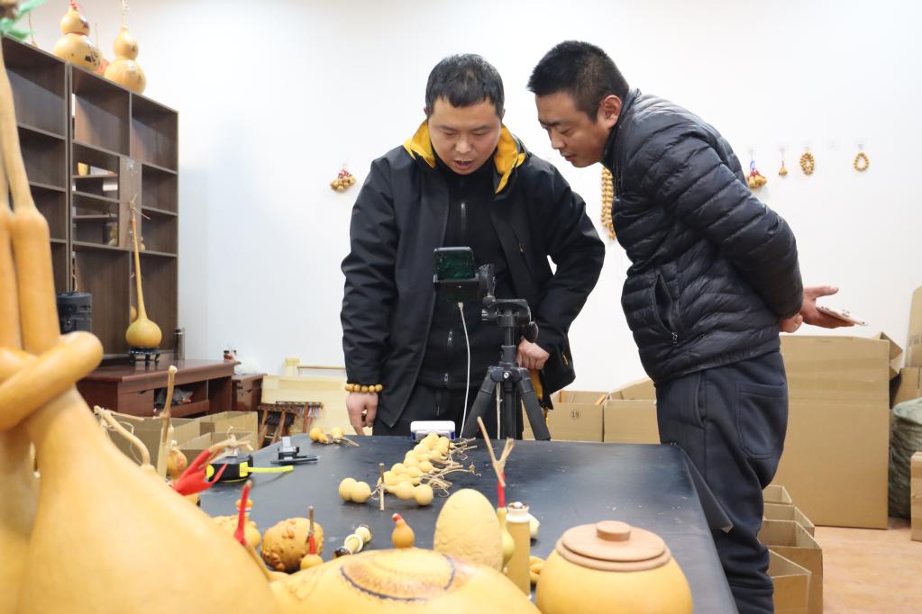 村民在直播賣葫蘆。新華社記者張力元 攝