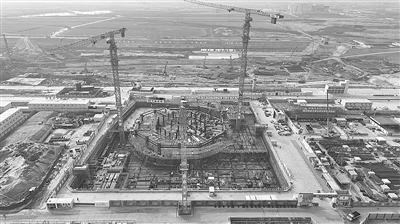 雄安新區啟動區項目建設如火如荼,中國中化總部基地正在進行地下結構施工。記者看到,直徑近百米的基坑內,幾十根鋼結構柱已經豎起,八角形的造型初顯輪廓,三臺塔吊高高矗立,一派熱火朝天景象。