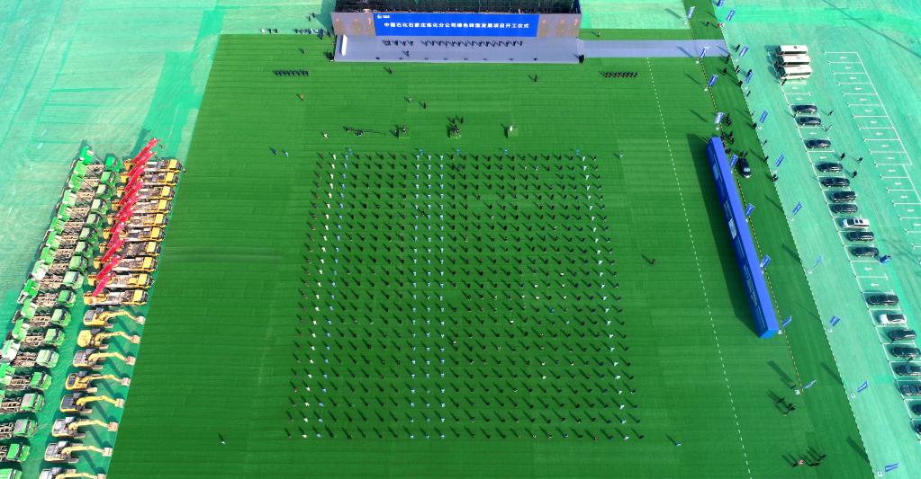 中國石化石家莊煉化分公司綠色轉型發展項目開工儀式現場(無人機照片)。(梁子棟 攝)