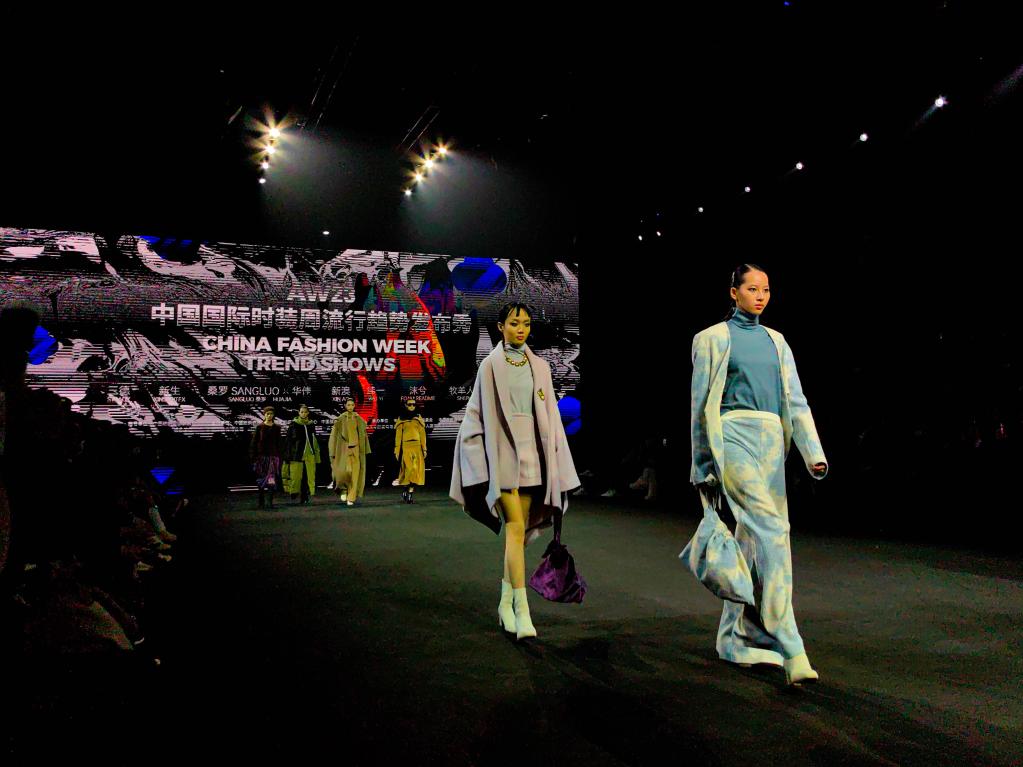 3月24日,2023秋冬中國國際時裝周T臺上,面料企業進行流行趨勢發布。新華社記者陳冬書 攝