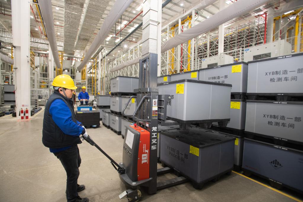 工人在比亞迪襄陽產業園里忙碌。新華社記者肖藝九 攝
