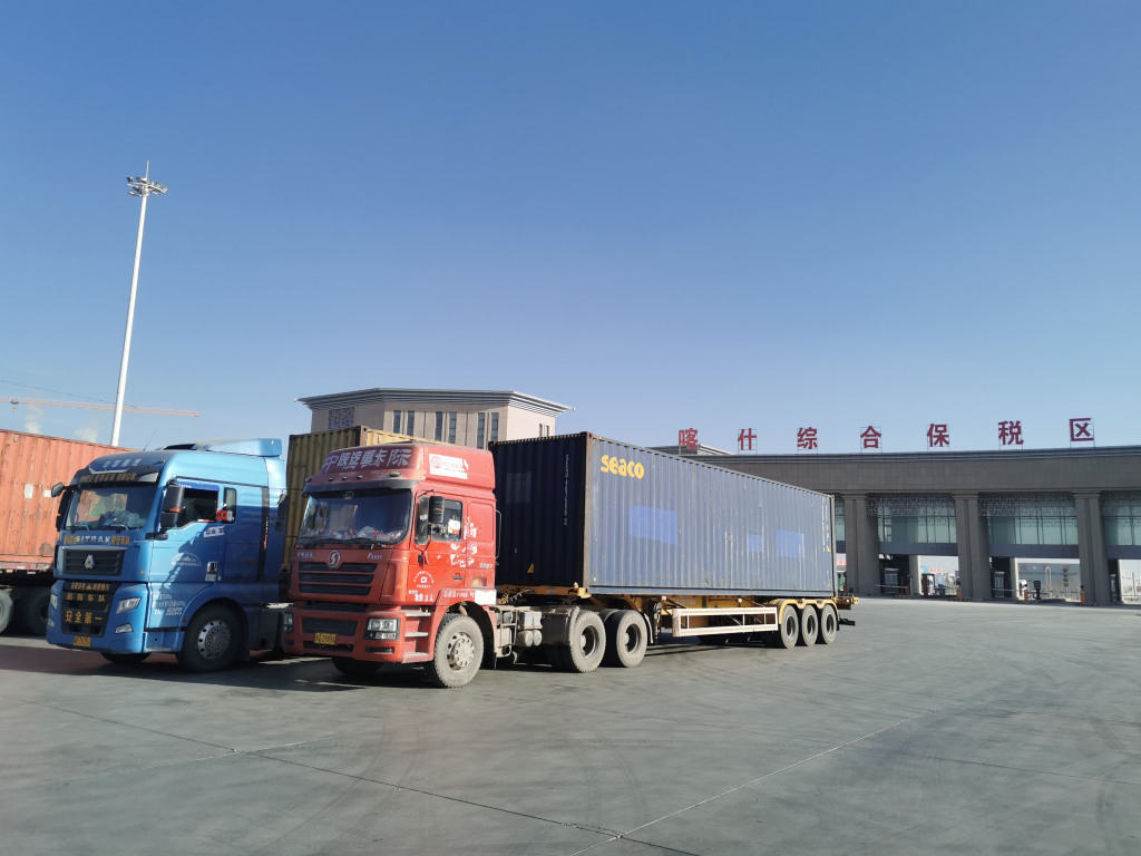 在喀什綜保區門前,貨車有序等待通行。新華社記者劉紅霞 攝