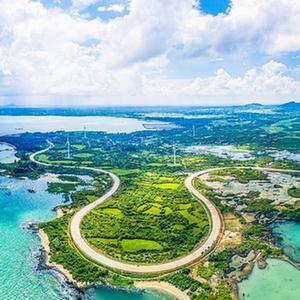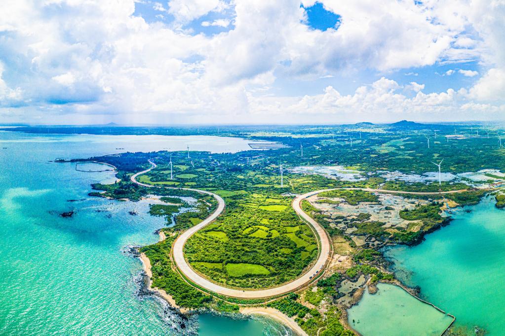 這是2022年10月6日在海南儋州峨蔓火山海岸拍攝的海南環島旅游公路(無人機照片)。新華社記者 蒲曉旭 攝