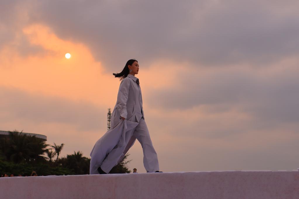 設計師楊夢瑩即將在該秀場舉辦個人服裝品牌秀,整場秀將依靠落日余暉的自然光線來完成?!耙r著海邊夕陽,我們這次的衣服材質輕柔,多是暖色調,希望可以給人們帶來春日海邊溫暖的感受?!睏顗衄撜f。