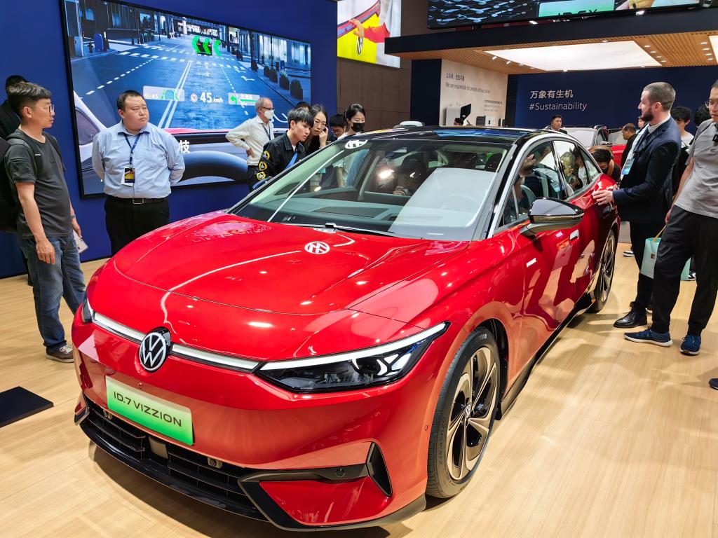 剛剛全球首發的大眾ID.7純電轎車亮相上海車展。新華社記者周蕊 攝