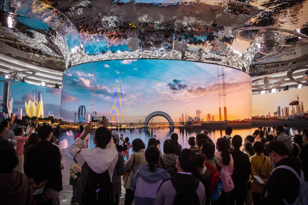 “炫酷又震撼,尤其是光影技術下的大美中國館以及超科幻的武漢館。逛一天展就走遍了整個中國,身臨其境地感受到各地大好山河與風土人情?!眮碜院系挠慰桶讐魣A說。