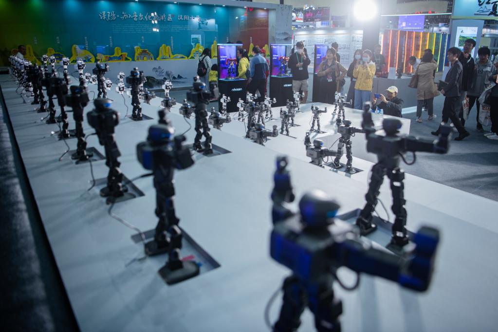 在音樂驛站表演現場,幾十個小型音樂機器人伴著荊楚特色音樂歡快起舞、動感十足,同樣情緒激昂的還有展位負責人蔡澤鋒?!叭绱藷狒[擁擠的場面令人激動,作為參展商,我們明顯感到了經濟復蘇的活力?!彼f。