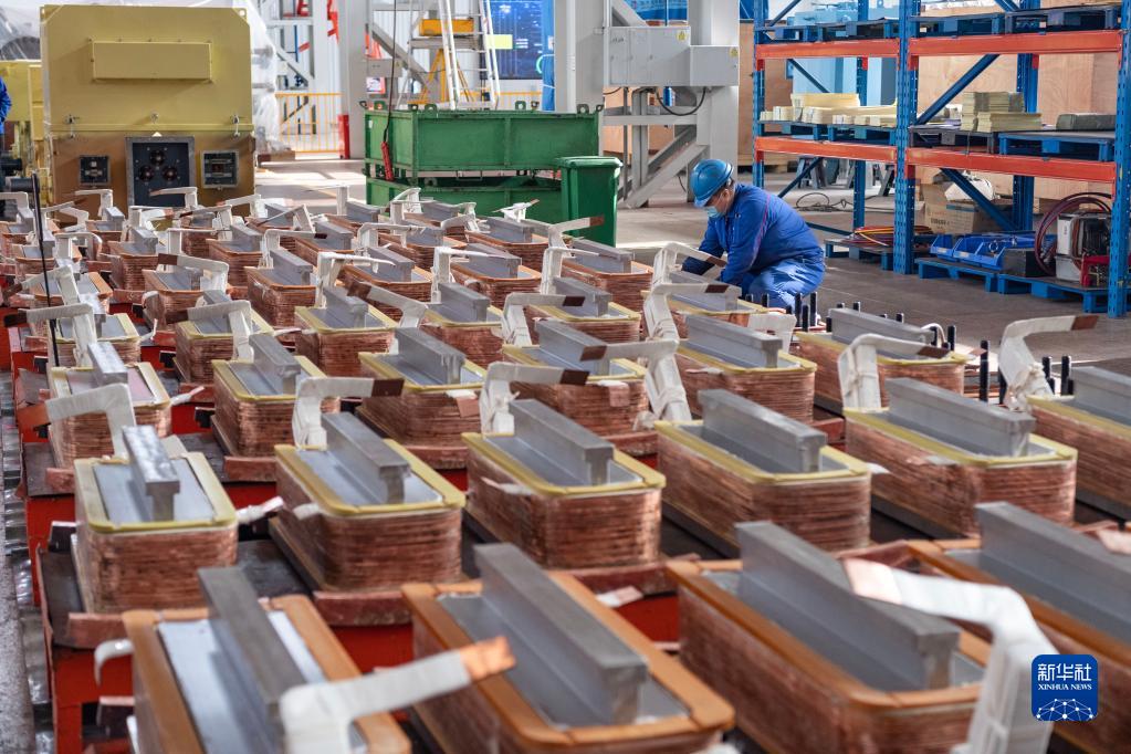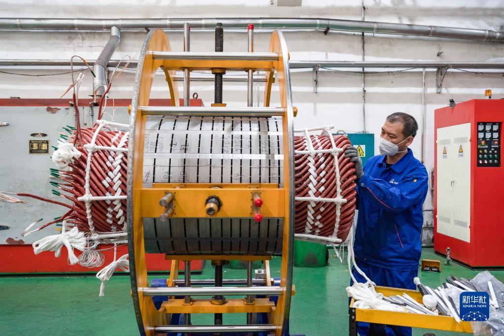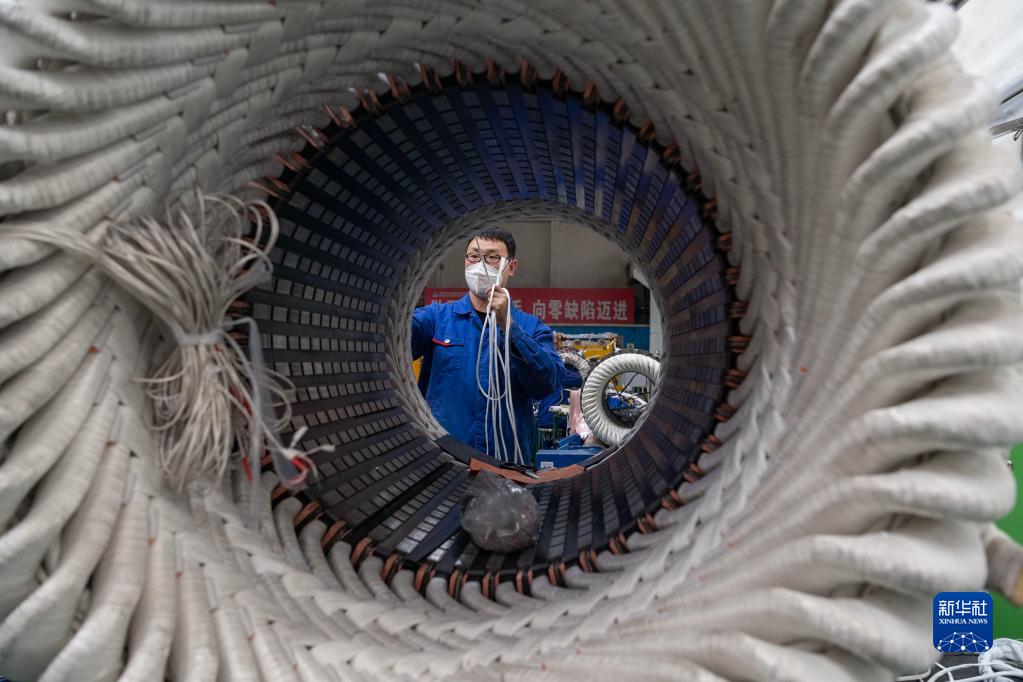 工人在哈爾濱電氣集團佳木斯電機股份有限公司生產車間內作業(4月4日攝)。新華社記者 謝劍飛 攝