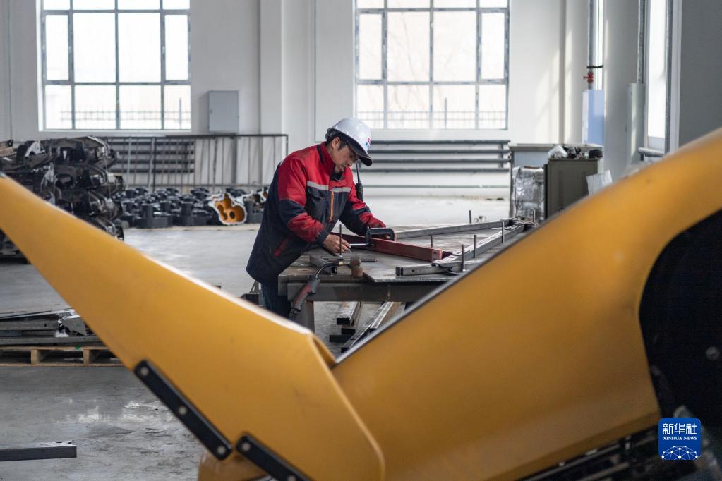 在黑龍江省佳木斯市湯原縣振華機械制造有限公司生產車間,工人在生產作業(4月6日攝)。新華社記者 謝劍飛 攝