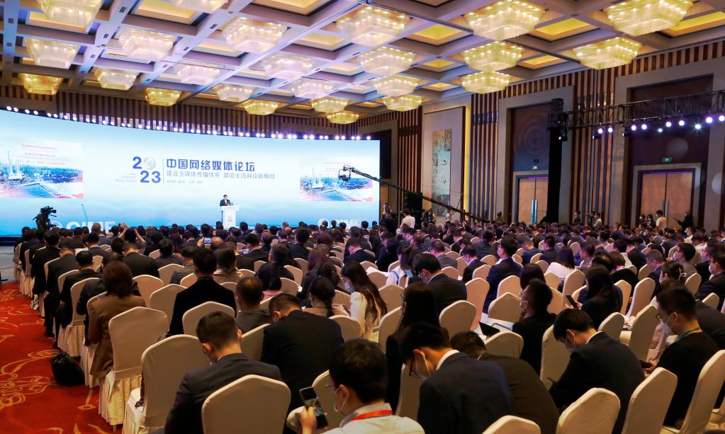 4月22日,2023中國網絡媒體論壇開幕式暨主論壇現場。新華社記者毛俊 攝