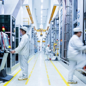 工人在亨通集團綠色光纖預制棒智能制造生產車間忙碌(2022年10月攝)。新華社發(亨通集團供圖)