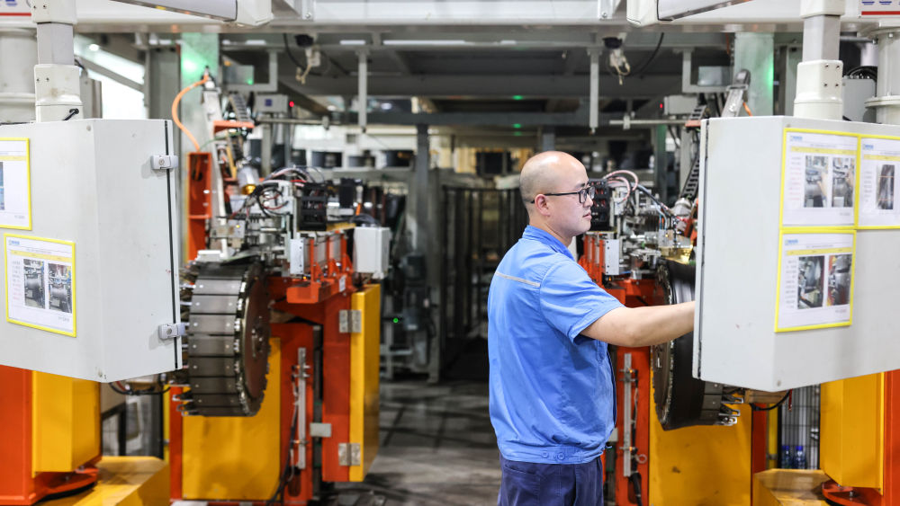 工作人員在貴州輪胎股份有限公司的“5G全連接工廠”成型區作業(2022年5月17日攝)。新華社記者 歐東衢 攝