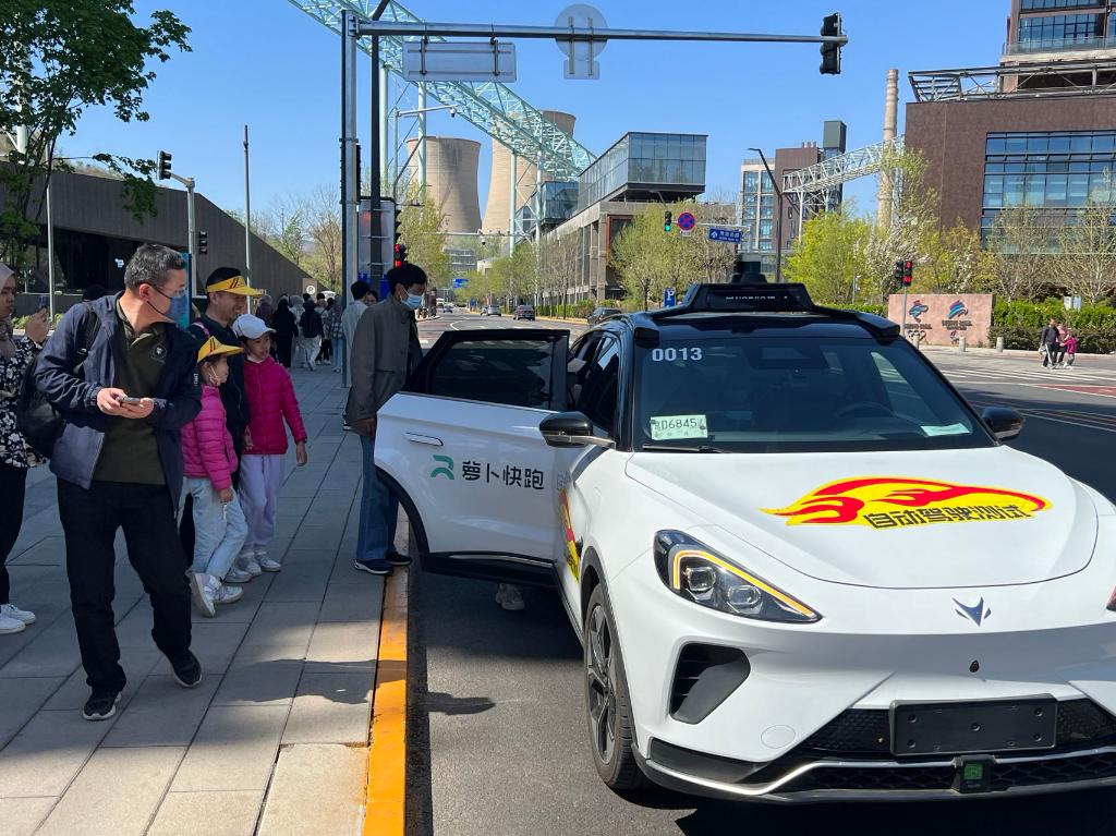 在京無人駕駛汽車吸引市民、游客駐足。(新華社記者郭宇靖 攝)