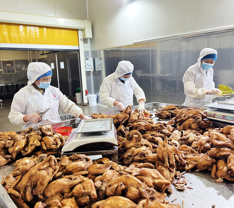 為了進一步提升符離集燒雞的產品質量,實現鄉村振興,當地通過“公司+合作社+家庭農場+農戶”的形式,建立產業利益聯結,打造燒雞產業聯合體。