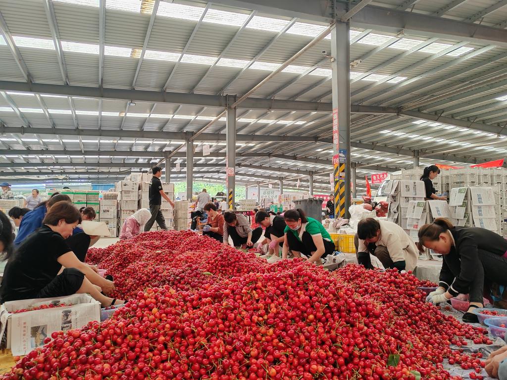 近年來,市場管理方用新思維和新理念運營管理大櫻桃市場,品控和交易都邁上新臺階?!拔覀兿仁墙ㄆ鹄滹L庫,使大櫻桃能夠在運輸中保持較高品質。還明確劃分了交易區、分揀區、快遞區等功能區?!惫谙蛴浾呓忉?,買賣雙方確定交易意向后,產品迅速進入分揀區進行分揀,分揀后再由順豐、中國郵政等公司設置的快遞點進行打包裝箱,整個流程速度越來越快。