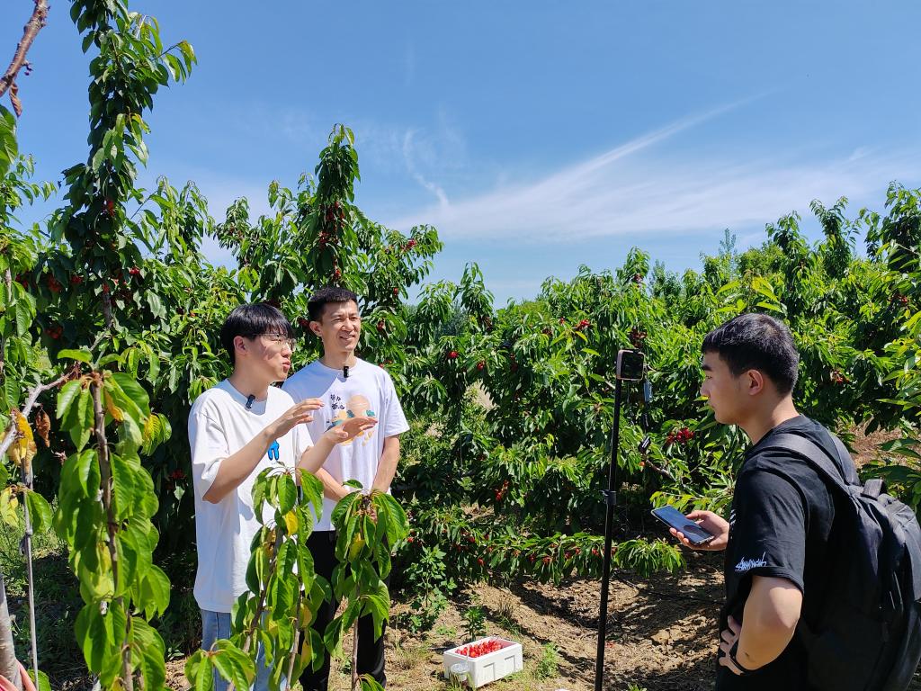 近年來,合作社還積極拓展電商、直播帶貨等銷售渠道。記者爬上南莊村的東山,在掛滿果實的櫻桃樹間走訪時,恰逢煙臺當地一直播團隊給濰坊電視臺做直播帶貨節目。兩名年輕小伙背靠櫻桃樹,向直播鏡頭前的觀眾介紹目前果實的狀況。