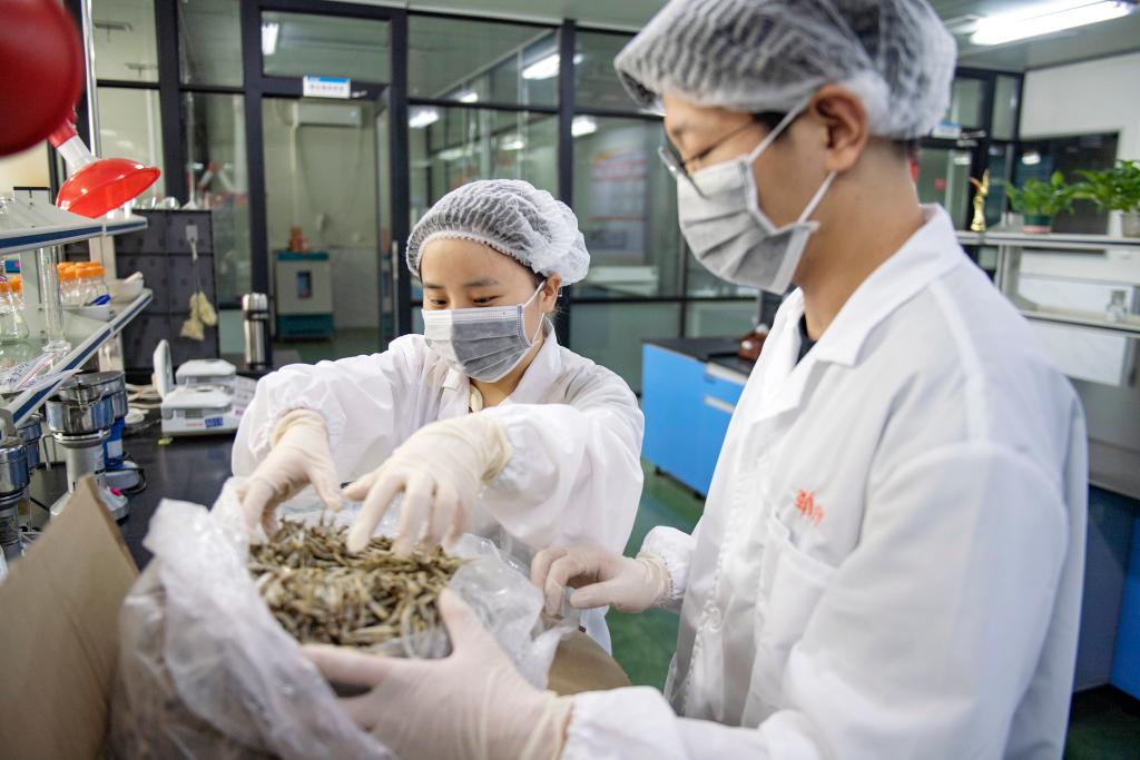 在湖南省岳陽市平江高新技術產業園區,勁仔食品平江生產基地實驗室工作人員開箱,準備對肯尼亞野生鳀魚產品進行水分檢測(6月28日攝)。6月29日,中國首次進口的肯尼亞野生鳀魚產品在湖南長沙開幕的第三屆中非經貿博覽會上亮相。新華社記者 孫瑞博 攝