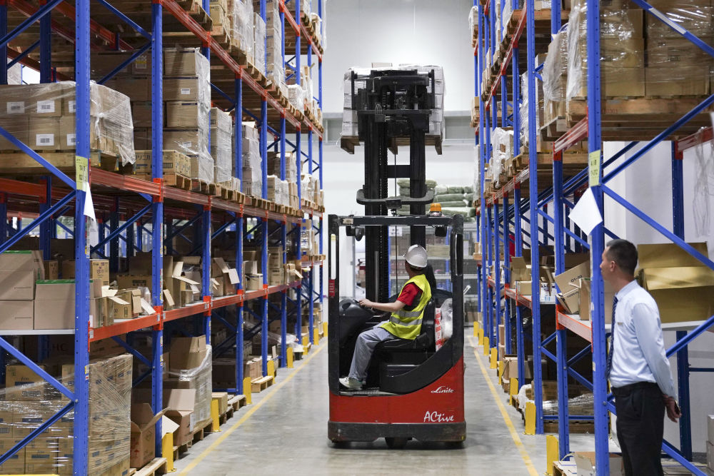 在上海虹橋商務區保稅物流中心(B型),工作人員在運輸跨境電商貨物(5月13日攝)。新華社記者 馬寧 攝