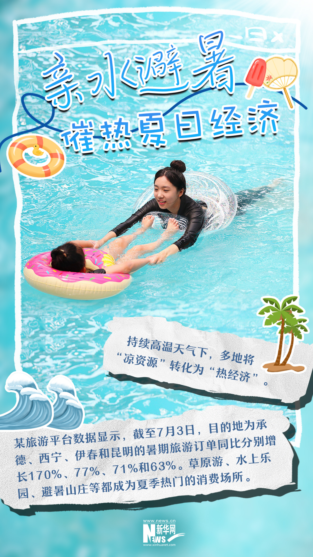 暑假已經過去一大半。這個夏天,由文旅、觀影組成的傳統游玩項目熱度不減,“城市漫步”、親水避暑等不少年輕人選擇的新興生活方式不斷涌現,帶動了一波“清涼經濟”新熱潮。