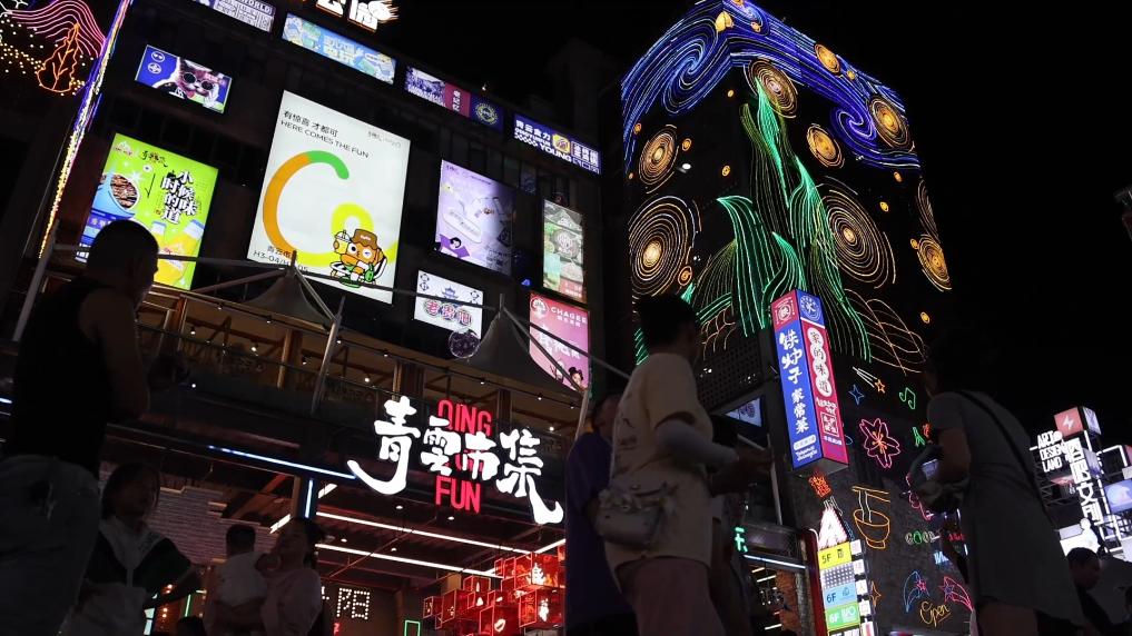 餐飲、娛樂、文創三種業態交織融合,7月以來,每天約有3萬人次在這里感受燈光璀璨的都市夜晚,體驗貴陽本地夜生活。