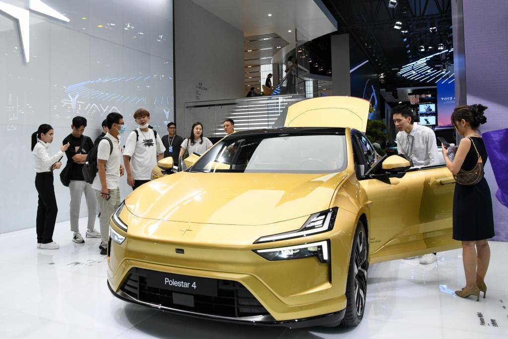 8月25日在第二十六屆成都國際汽車展覽會現場拍攝的極星展臺。新華社記者 唐文豪 攝