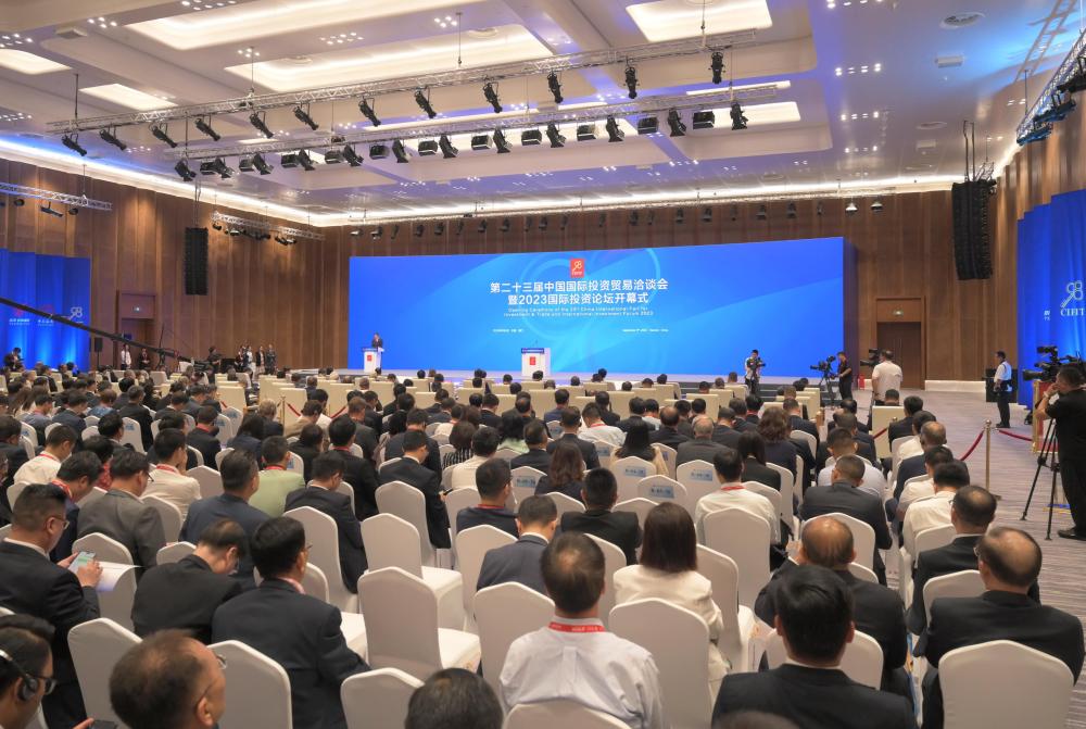 這是9月8日拍攝的第二十三屆中國國際投資貿易洽談會暨2023國際投資論壇開幕式現場。新華社記者 林善傳 攝