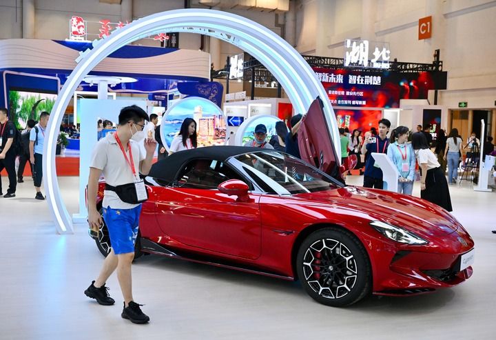 這是9月8日在第二十三屆中國國際投資貿易洽談會展覽上拍攝的新能源汽車。新華社記者 姜克紅 攝