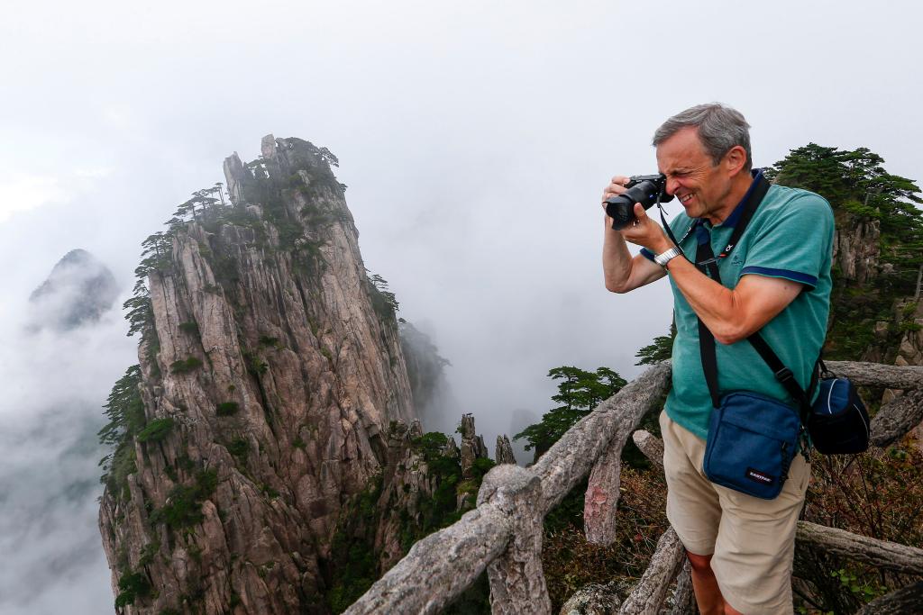9月25日,外國游客在安徽省黃山市黃山風景區游玩。新華社發(施亞磊 攝)