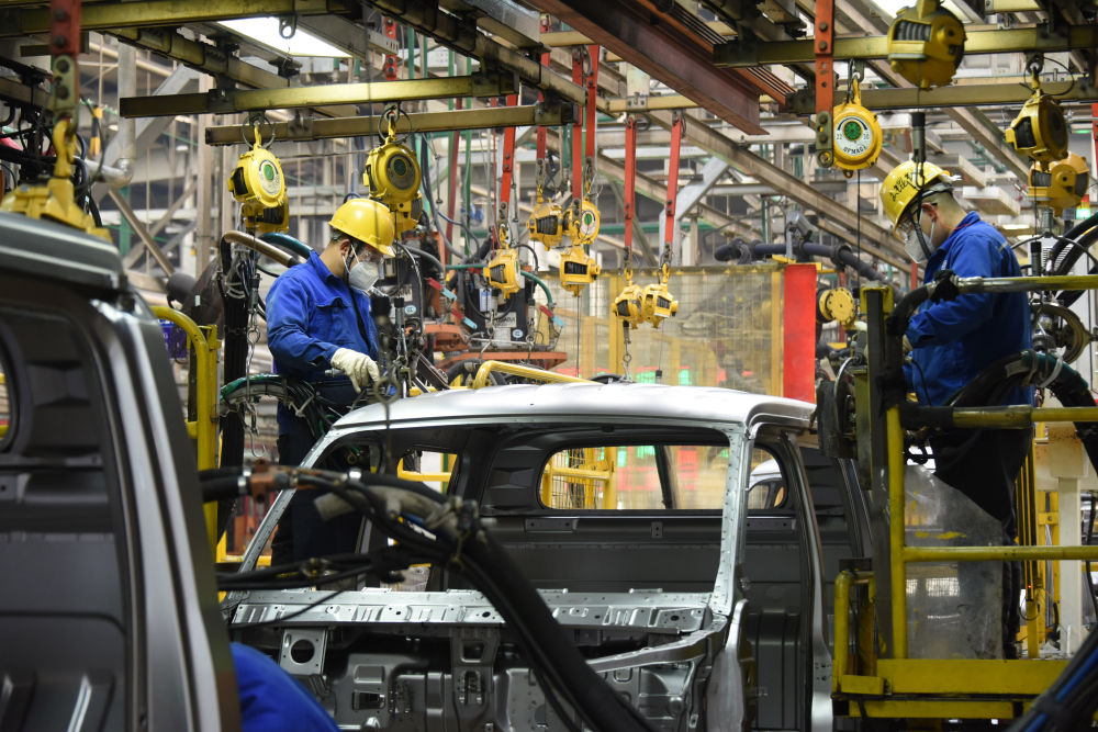 工人在山東自貿試驗區青島片區一汽車制造企業車間內生產汽車(2023年2月23日攝)。新華社記者 李紫恒 攝