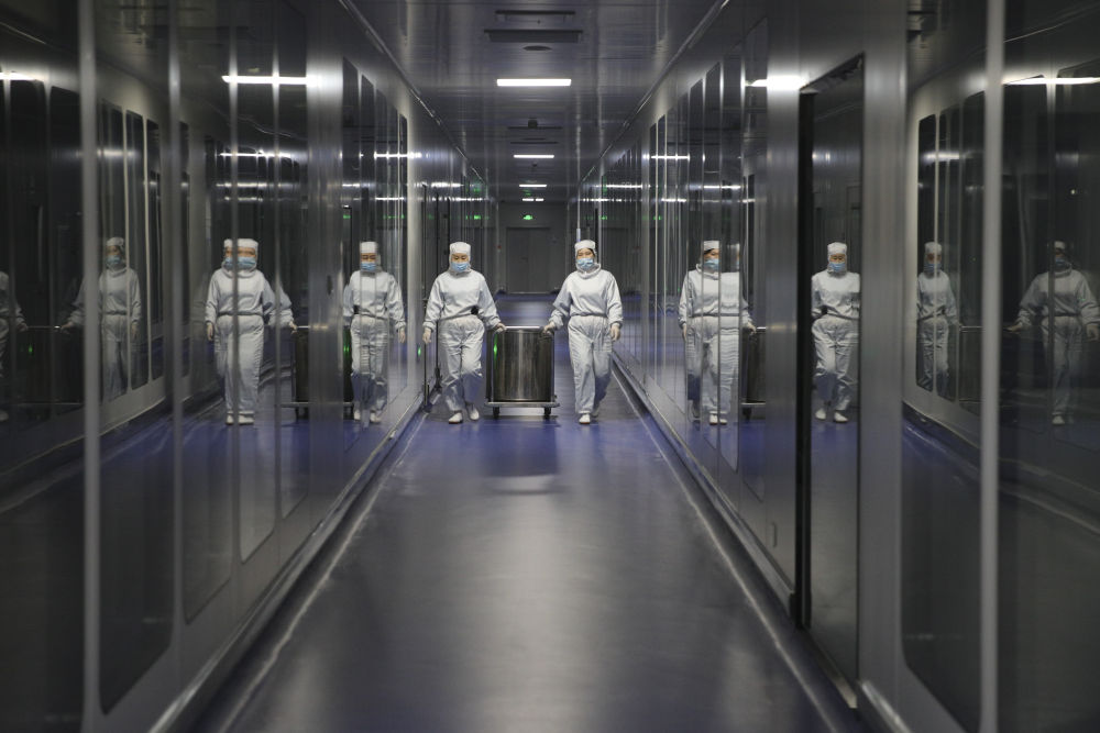 在中國(黑龍江)自由貿易試驗區哈爾濱片區的哈爾濱派斯菲科生物制藥股份有限公司生產車間內,工作人員在進行生產作業(2020年11月13日攝)。新華社記者 張濤 攝