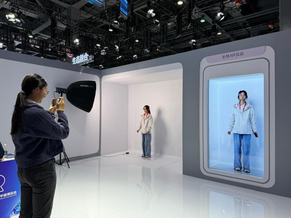 這是參展觀眾在體驗全息AR互動。新華社記者陳柱佐 攝