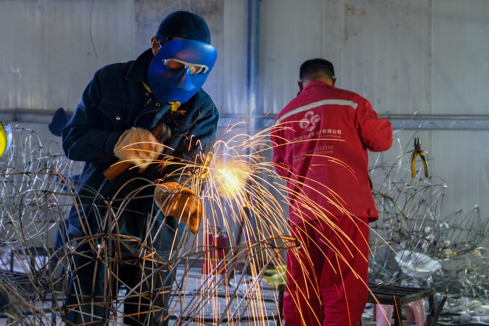 焊工在自貢市大安區某彩燈制作廠趕制彩燈。新華社記者唐文豪 攝