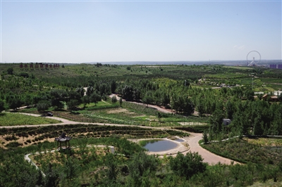 在實施土地整理和復墾綠化之前,黑岱溝露天礦北排土場上裸露著大片沙土,刮風時塵土飛揚。如今,這里被改造成疊翠林區,蔥蘢的草木,碧波蕩漾人工湖,嬉戲的水鳥,精心設計的小橋流水、涼亭、棧道,美不勝收。