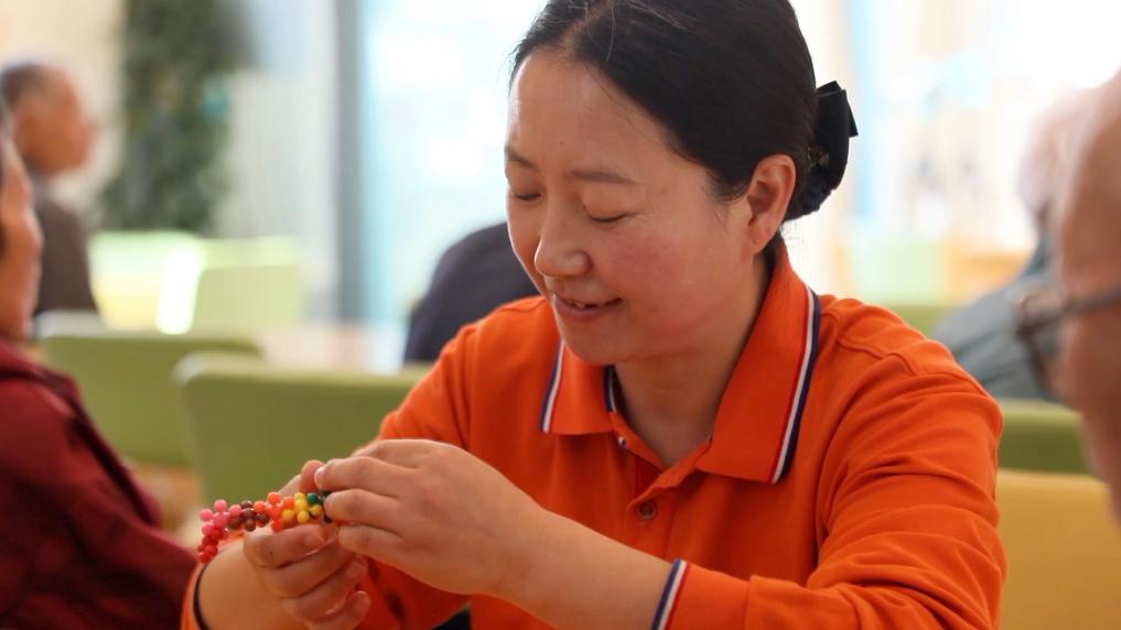 余成萍是青海省西寧市石頭磊養老服務中心的一名介護師,她的主要工作是照顧老人生活,包括一日三餐、日常起居、心理輔導等。