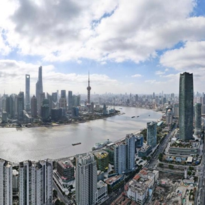 從上海虹口區北外灘空中俯瞰黃浦江兩岸(2023年1月10日攝,無人機全景照片)。新華社記者方喆攝