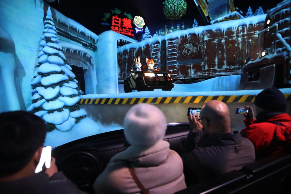 12月19日晚,體驗嘉賓在上海迪士尼樂園“瘋狂動物城”體驗“熱力追蹤”。新華社記者 劉穎 攝