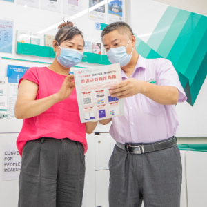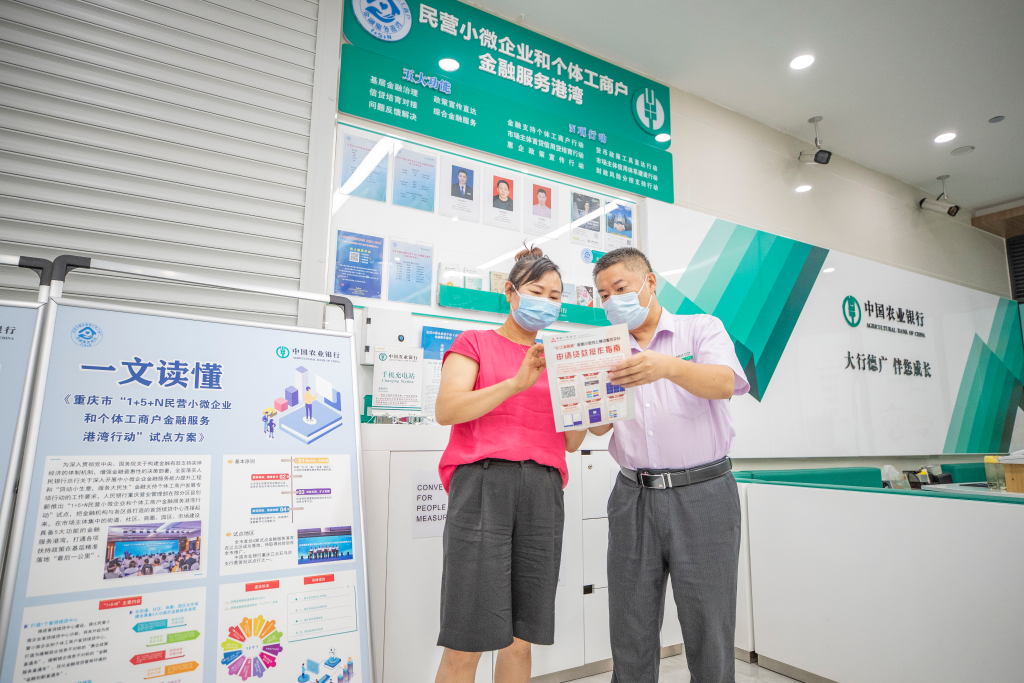 農行重慶江北石馬河支行的客戶經理向批發市場的商戶介紹普惠金融貸款相關政策和產品。新華社記者黃偉 攝