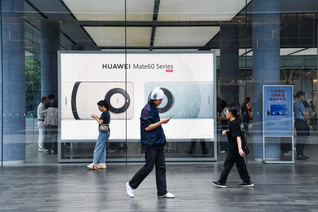 2023年9月11日,行人從華為深圳旗艦店前走過。新華社記者 梁旭 攝