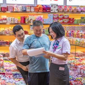 圖為重慶市一家銀行工作人員對當地批發市場客戶融資需求進行走訪。新華社發