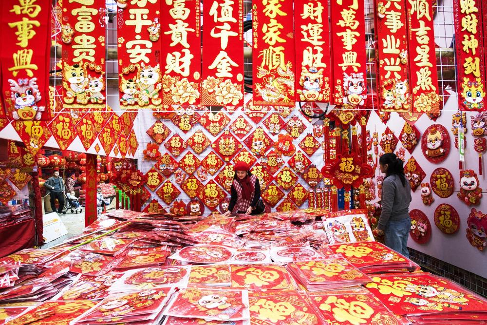 2024年1月13日,市民在廣西南寧市上海路年貨市場選購新春飾品。新華社發(趙京武 攝)