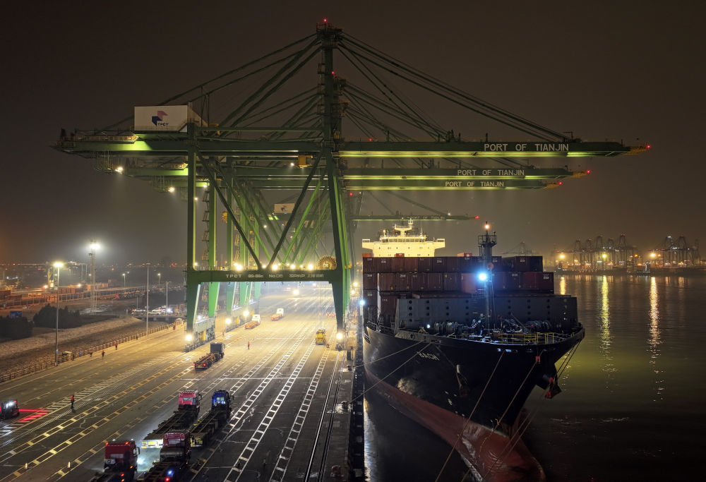 1月16日深夜,一艘巨輪橫跨太平洋后,緩緩駛進天津港