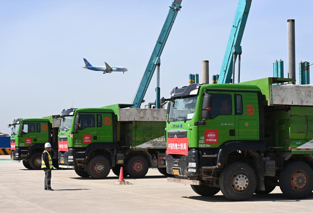2023年9月28日,工作人員在空客天津第二條總裝線項目開工現場查看設備準備情況。新華社記者趙子碩攝