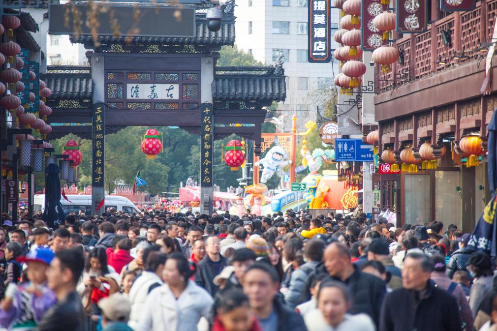 2月13日,人們在南京夫子廟景區游玩。新華社發(孫忠南 攝)