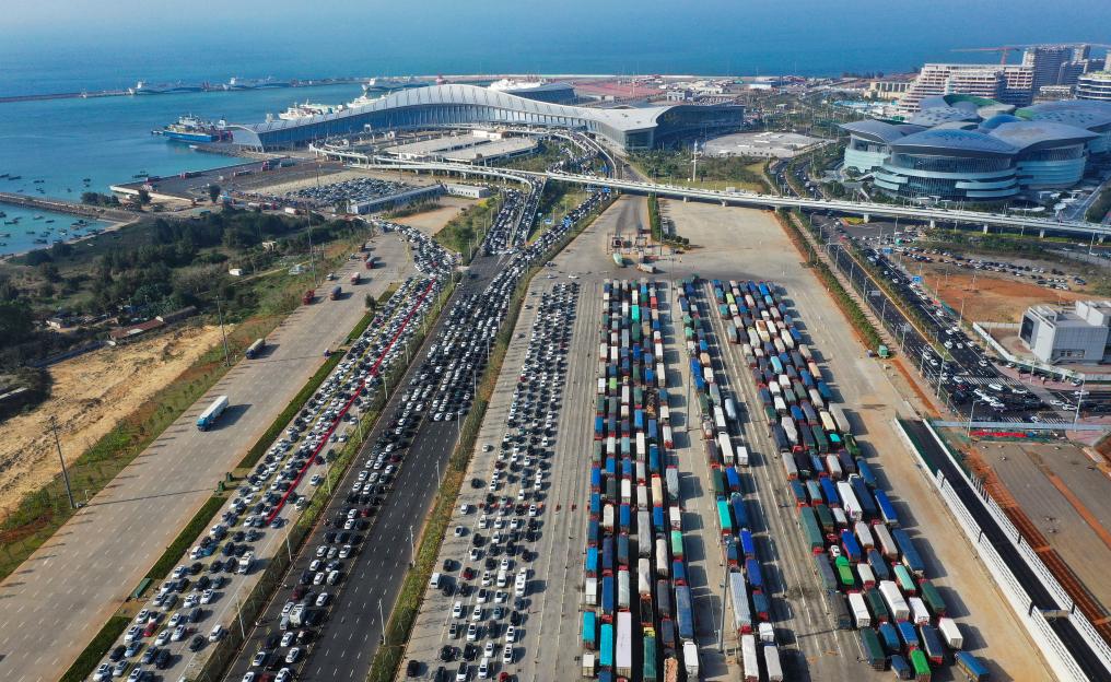 ??谑薪煌ㄟ\輸和港航管理局發布的信息顯示,截至2月19日15時,預約出島小車總數約2萬輛,已運送出島約1萬輛,全天預約待出島約1萬輛。新海港港區和港外待渡車場呈現飽和狀態,疏運仍需較長時間。
